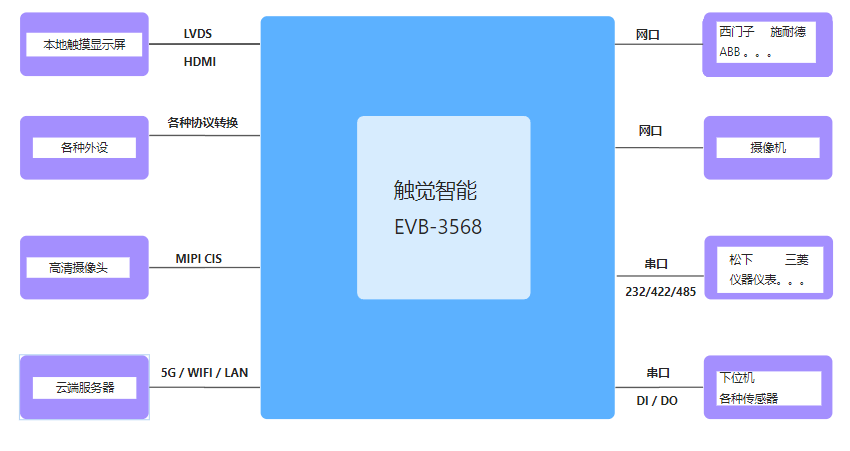 控制主板主要功能需求:显示接口,LVDS高清屏、HDMI大屏、5路串口连接各种传感器、PLC、变频器等、多路GPIO、6个USB接口、2路CAN口、2路以太网、WIFI、4G多种入网模式实现远程控制与管理;自带1T NPU,便于AI和各种算法的加持。